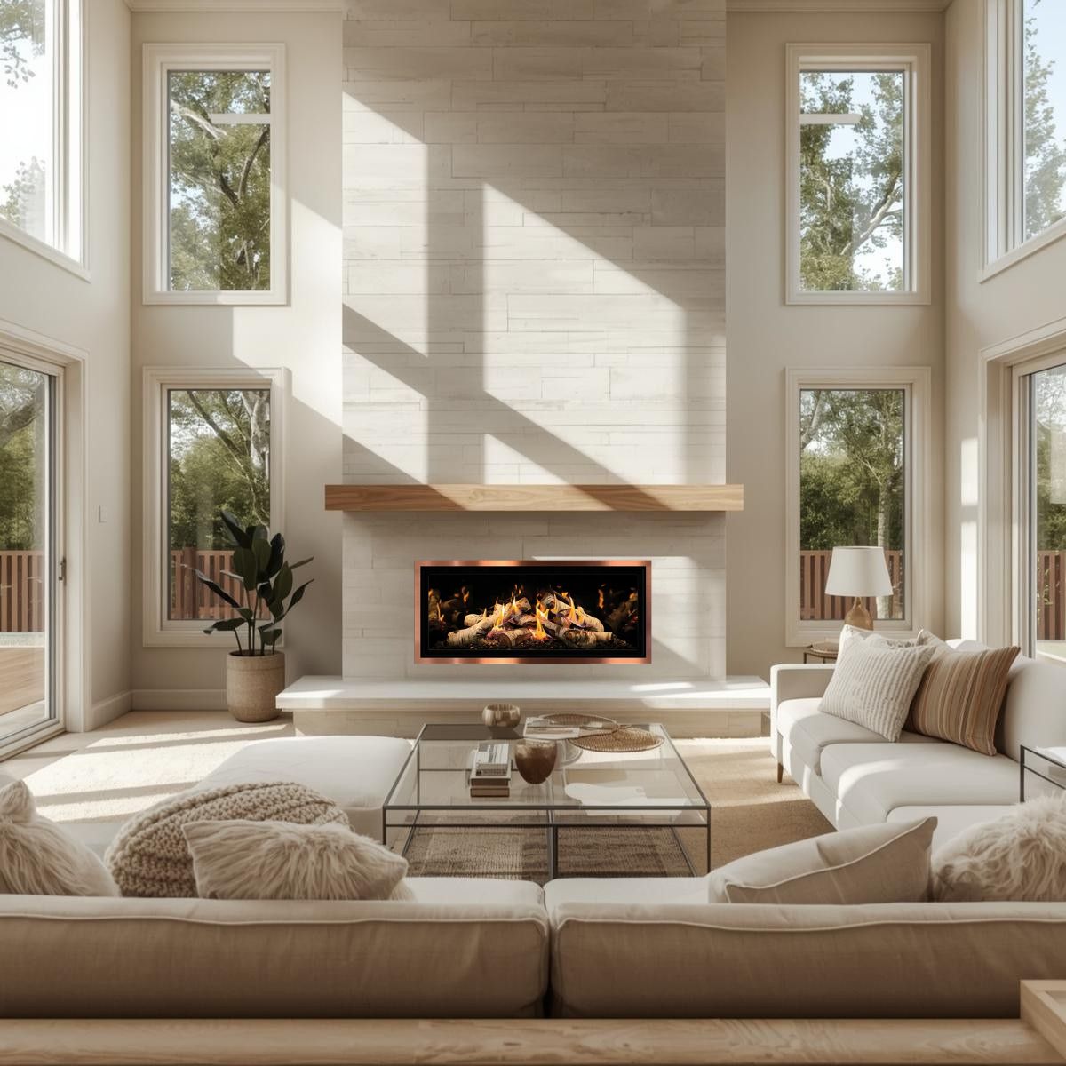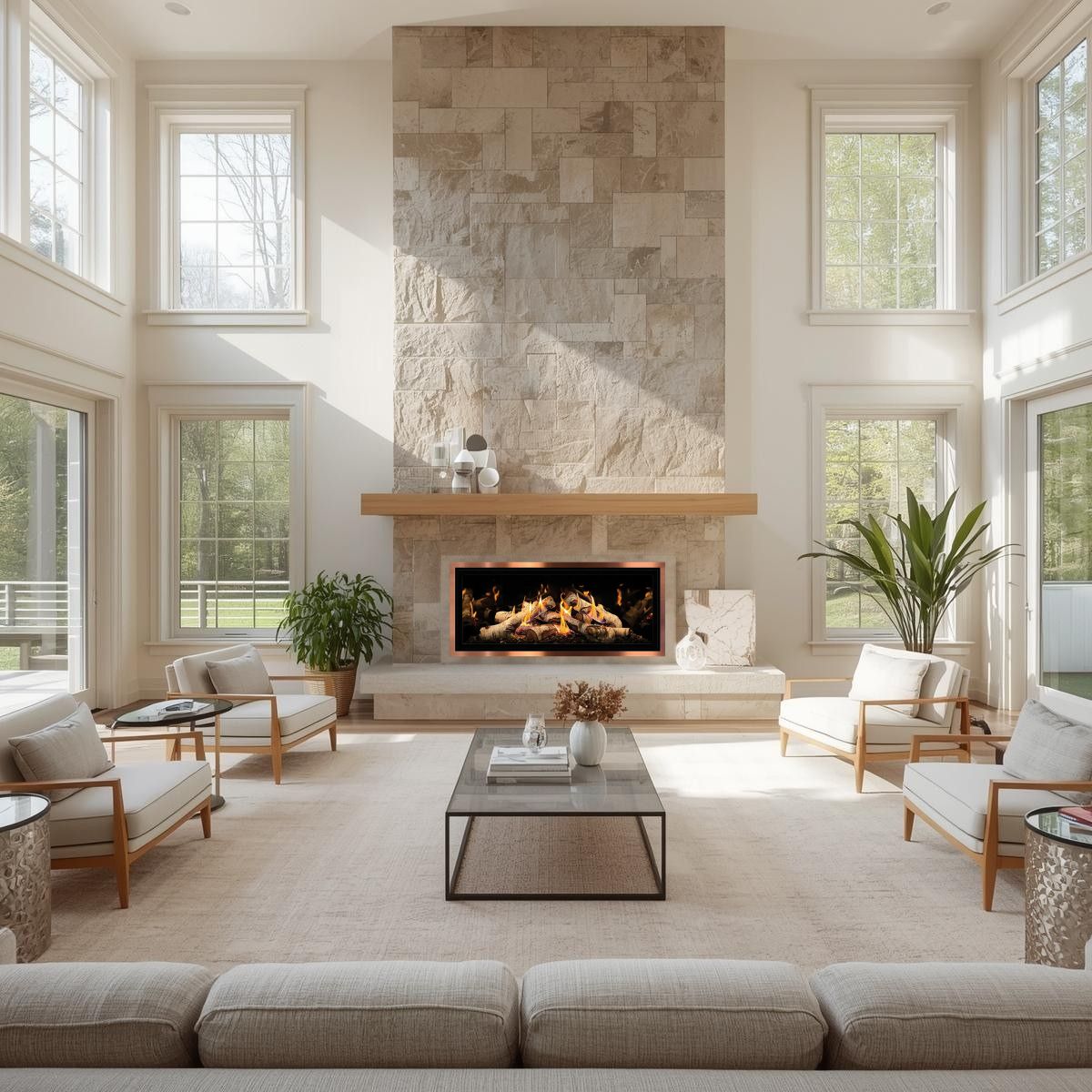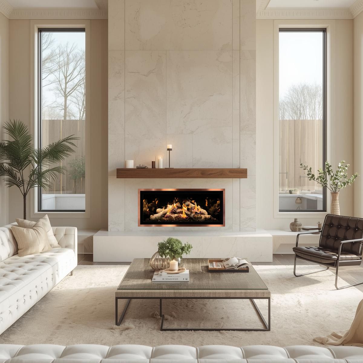 The ML48 FireIn delivers a wide, picture-window flame in a clean, linear format—anchoring feature walls with depth and drama. Pair its high-definition FireIn™ presentation with your choice of hand-finished Timberline log sets or sleek décor media, then complete the look with your preferred liner and front for a tailored, designer finish.